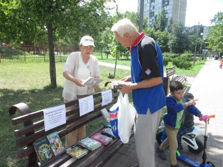 Мешканці масиву мали змогу відвідати бібліотеку просто неба та познайомитись з книжковими новинками, отримати консультацію бібліотекарів про наявні бібліотечні ресурси, поспілкуватися і просто змістовно та з користю провести свій вільний час.