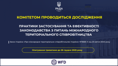 Комітет з питань організації державної влади, місцевого самоврядування, регіонального розвитку та містобудування розпочинає роботу з аналізу й оцінки ефективності впровадження Закону України «Про міжнародне територіальне співробітництво України» №3668-IX від 23 квітня 2024 року у рамках парламентського постзаконодавчого контролю.