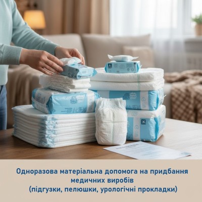 - Цільове призначення: придбання медичних виробів (підгузки, пелюшки, урологічні прокладки тощо)