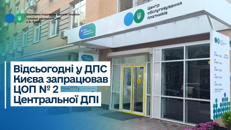 Відсьогодні у ДПС Києва запрацював Центр обслуговування платників № 2 Центральної ДПІ