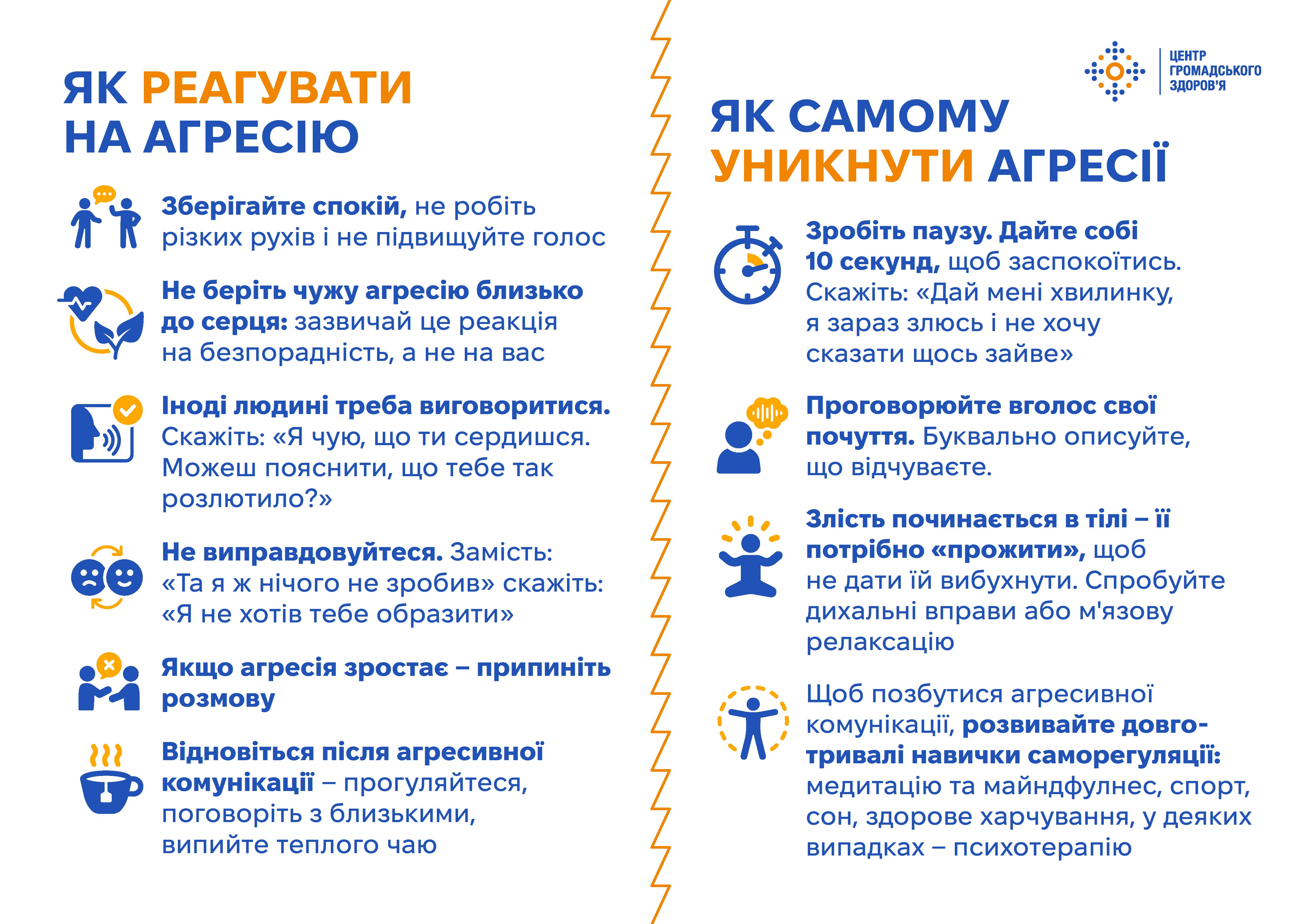 Іноді людині потрібно просто виговоритися. Якщо агресія зростає, краще припинити розмову й повернутися до неї пізніше. Після напруженої комунікації корисно відновитися: прогулятися, поговорити з близькими, відпочити.